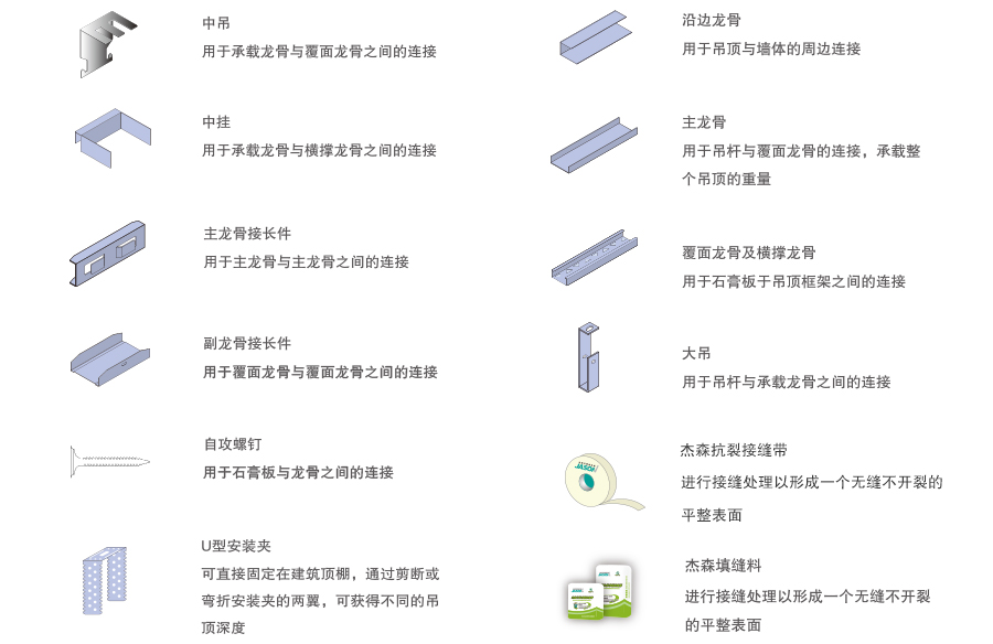 吊顶系统材料组成清单